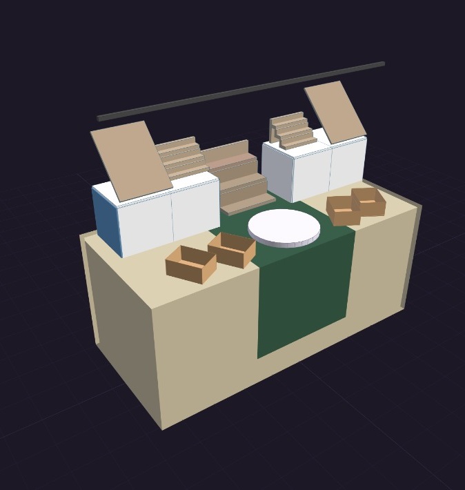 - 3D objects: box, basket, circular display, hollow cylinder, bar (square/round, horizontal/vertical/depth).