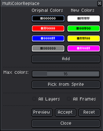 | Tags | Aseprite, color-replace, colors, extension, Pixel Art, script, tool |